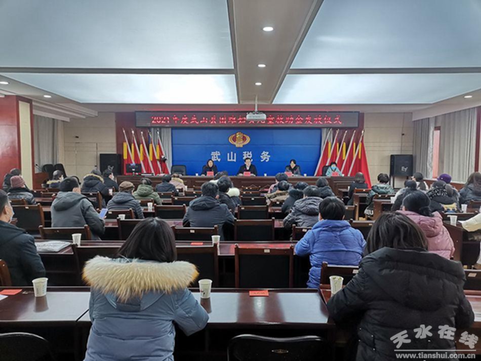 武山縣融媒體中心1月12日訊(記者 車彤瑤)1月12日,武山縣舉行2021年全國婦聯(lián)“低收入農(nóng)村婦女兩癌救助”中央專項彩票公益金資金和困難婦女兒童救助金發(fā)放政儀式,為28名“兩癌”患病婦女發(fā)放專項救助金28萬元。