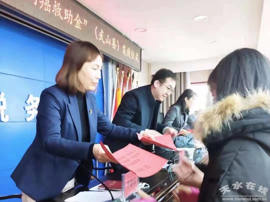 1月12日,武山縣婦聯(lián)舉行2021年度全國婦聯(lián)“低收入婦女兩癌救助”中央專項(xiàng)彩票公益金暨困難婦女兒童救助金發(fā)放儀式?h委常委、組織部部長宋昌華、縣政協(xié)副主席黨榮華出席會議,各級婦聯(lián)干部、受助患病婦女和困難婦女兒童代表及家屬共計(jì)60余人參加會議。