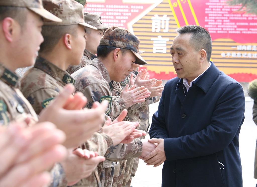 在駐縣部隊(duì),王新強(qiáng)與部隊(duì)官兵親切交談,詳細(xì)了解工作生活等情況,代表縣四大組織向關(guān)心支持全縣經(jīng)濟(jì)社會(huì)發(fā)展的駐縣部隊(duì)官兵致以新春的美好祝福。王新強(qiáng)說(shuō),駐縣部隊(duì)官兵長(zhǎng)期以來(lái)把駐地當(dāng)故鄉(xiāng)、把群眾當(dāng)親人,在圓滿完成軍事任務(wù)和部隊(duì)建設(shè)的同時(shí),主動(dòng)圍繞全縣脫貧攻堅(jiān)和經(jīng)濟(jì)社會(huì)發(fā)展大局,與人民心連心、同呼吸、共命運(yùn),積極投身脫貧攻堅(jiān),全力支援地方經(jīng)濟(jì)建設(shè),主動(dòng)承擔(dān)急難險(xiǎn)重任務(wù),為推動(dòng)全縣經(jīng)濟(jì)社會(huì)發(fā)展作出了貢獻(xiàn)。武山縣將一如既往的關(guān)心支持部隊(duì)建設(shè),全力解決工作中遇到的困難和問(wèn)題,深入推進(jìn)軍民融合發(fā)展,不斷開創(chuàng)雙擁共建工作新局面。希望駐武部隊(duì)官兵進(jìn)一步深化雙擁共建,促進(jìn)軍地?cái)y手并進(jìn)、共同發(fā)展,把軍民融合工作做得更好,為武山縣經(jīng)濟(jì)社會(huì)發(fā)展做出新的更大貢獻(xiàn)。部隊(duì)官兵對(duì)縣委、縣政府長(zhǎng)期以來(lái)對(duì)部隊(duì)建設(shè)的支持表示感謝,表示將扎根武山,奉獻(xiàn)武山,努力為武山縣經(jīng)濟(jì)社會(huì)發(fā)展和人民群眾幸福作出應(yīng)有的貢獻(xiàn)。