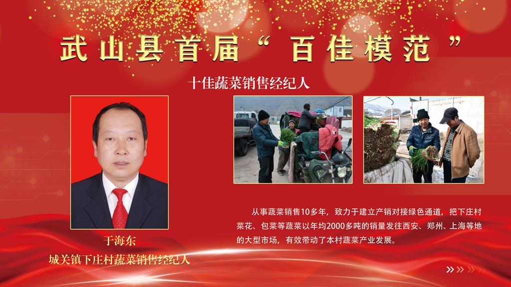 編者按:2021年,武山縣堅(jiān)持以習(xí)近平新時代中國特色社會主義思想為指導(dǎo),緊扣“三新一高”的要求,大力培育和踐行社會主義核心價(jià)值觀,涌現(xiàn)出了一大批作出新貢獻(xiàn)、取得新業(yè)績、展現(xiàn)新風(fēng)貌的先進(jìn)典型。為樹立典型、弘揚(yáng)正氣、凝聚力量,引導(dǎo)和激勵廣大干部群眾向先進(jìn)模范學(xué)習(xí),爭做崇高道德的踐行者、文明風(fēng)尚的維護(hù)者、美好生活的創(chuàng)造者,縣委宣傳部、縣融媒體中心聯(lián)合推出【百佳模范】專題欄目,全面展示“百佳模范”先進(jìn)事跡和感人故事,為加快建設(shè)經(jīng)濟(jì)繁榮、城鄉(xiāng)美麗、生態(tài)宜居、治理高效、人民幸福的現(xiàn)代化新武山凝聚強(qiáng)大的精神動力。