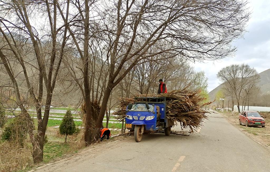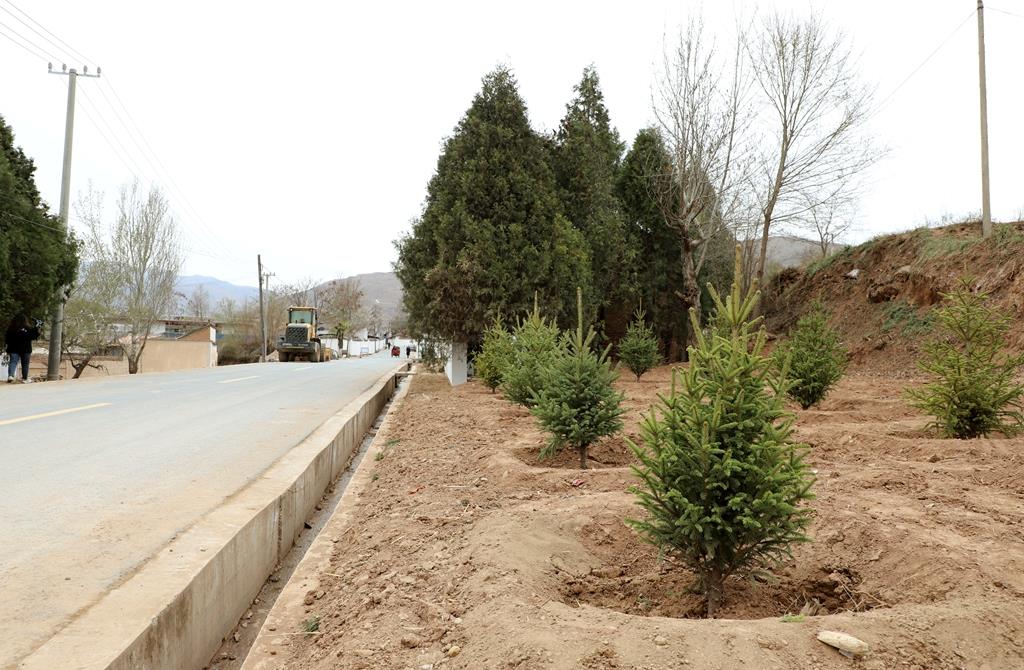 在高樓村,鎮(zhèn)村干部、黨員群眾以及村上公益性崗位人員齊發(fā)力,補(bǔ)植下旱柳、云杉等行道樹,對道路兩側(cè)亂堆亂放的柴草、秸稈、建筑物料等進(jìn)行規(guī)整清理。村民陳牛成說:“這樣一弄整潔多了,等樹長大了也能乘涼了。”