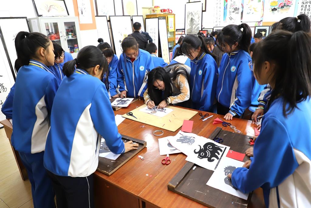 “剪紙過程中,一定要注重線條的流暢性。”美術(shù)老師智艷麗耐心指導(dǎo)孩子們做剪紙!拔覀儗W(xué)校每周舉行一次課外興趣活動,主要是以書法、繪畫、剪紙、麥稈畫為主,這些活動的開展有利于讓學(xué)生發(fā)現(xiàn)美、創(chuàng)造美,從而促進(jìn)身心發(fā)展教育!