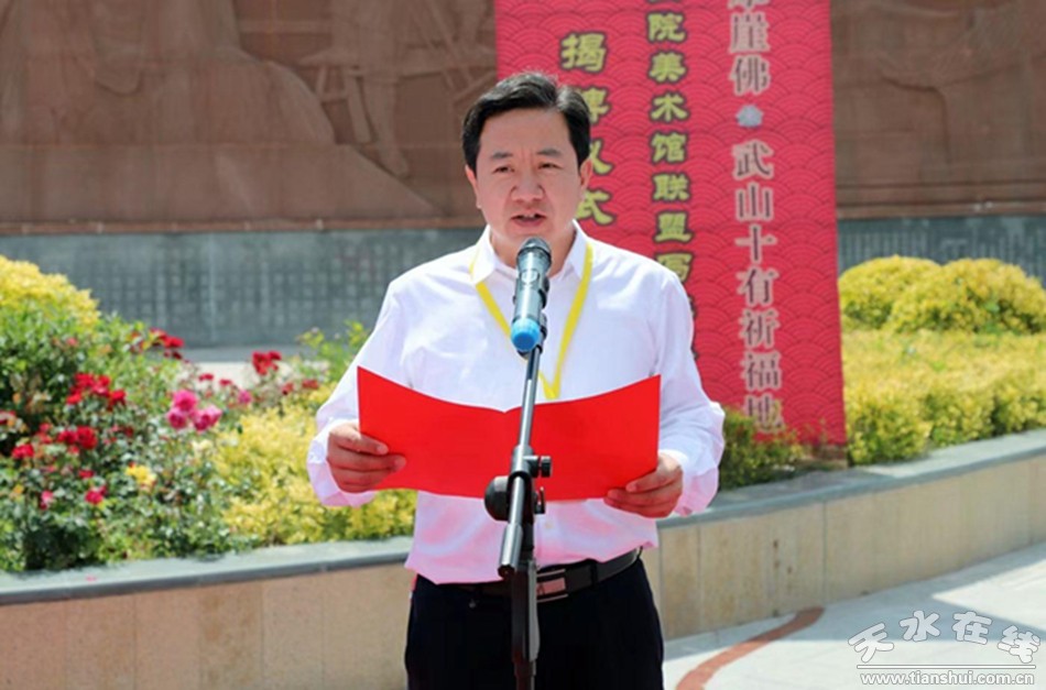 省文聯(lián)黨組成員、副主席王正茂,市委常委、宣傳部部長王文東,市人大常委會副主任何吉洲,市政府副市長汪小娟,市政協(xié)副主席羅增芳,省人大原副秘書長陳田貴,省統(tǒng)計局巡視員令軍民,市文旅局局長牛新虎,市委教育工委書記、市教育局黨組書記楊瑞峰,省書協(xié)專職副主席相玉榮,省書協(xié)副主席、蘭州大學(xué)教授秦理斌,甘肅省畫院美術(shù)館聯(lián)盟副主席、天水市美術(shù)館館長、天水畫院院長李靖,甘肅畫院書法部主任、甘肅書法院副院長、國家一級美術(shù)師嚴(yán)文學(xué),天津津南區(qū)咸水沽鎮(zhèn)黨委副書記呂永清,天水市四縣兩區(qū)領(lǐng)導(dǎo),武山縣退休領(lǐng)導(dǎo)及省內(nèi)文化界人士,中央和省、市新聞媒體記者出席揭牌儀式?h委副書記、縣長王志成主持揭牌儀式,縣人大常委會主任孫德銀,縣政協(xié)主席龐明全,縣二級巡視員張璞銀參加揭牌儀式,縣委常委、宣傳部部長胡麗霞介紹武山縣文化旅游資源情況。