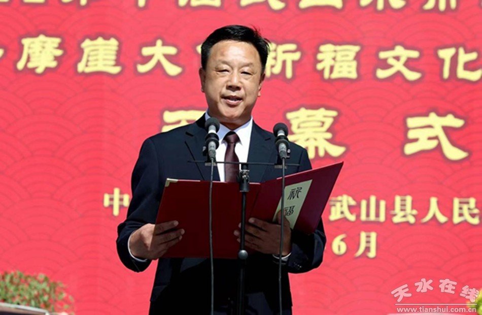 武山縣委書記王新強(qiáng),天水市四縣兩區(qū)領(lǐng)導(dǎo),武山縣人大常委會主任孫德銀及武山縣四大組織領(lǐng)導(dǎo),省內(nèi)武山籍文化人士,省市石窟文化研究專家學(xué)者,中央駐甘媒體記者、省市新聞媒體記者,省內(nèi)旅行社代表、部分投資客商,武山縣退休老干部、縣內(nèi)文旅行業(yè)和群眾代表參加開幕式。武山縣委副書記、縣長王志成主持儀式,武山縣政協(xié)主席龐明全致祈福辭。