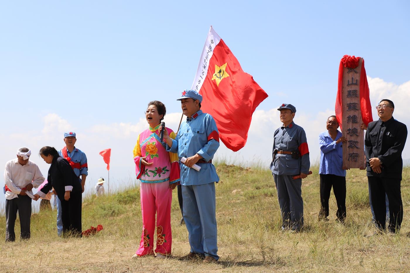 “頡家大院張燈又結(jié)彩,蘇維埃政府建起來……”作為主唱的馬福來和孟秀萍介紹,這個(gè)情景劇排練前前后后共用了半個(gè)月時(shí)間,每一次的排練,都是一次紅色教育!拔覀兡芨惺艿教K維埃政府建起來的場景,紅軍帶領(lǐng)群眾投入革命鬧解放的場景,以及紅軍要離開時(shí)群眾依依不舍的場景!