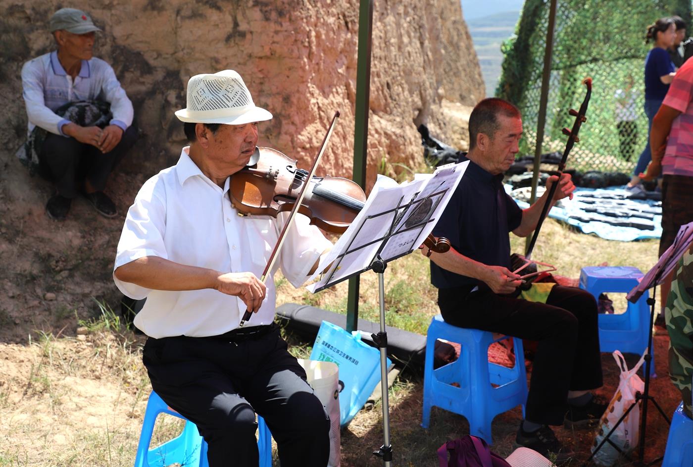“山丹丹花兒開喲,紅軍要出發(fā);緊跟著紅旗走喲,要聽黨的話……”伴隨著小提琴和二胡的悠揚(yáng)旋律,費(fèi)山村紅軍堡下,長征精神傳四方。