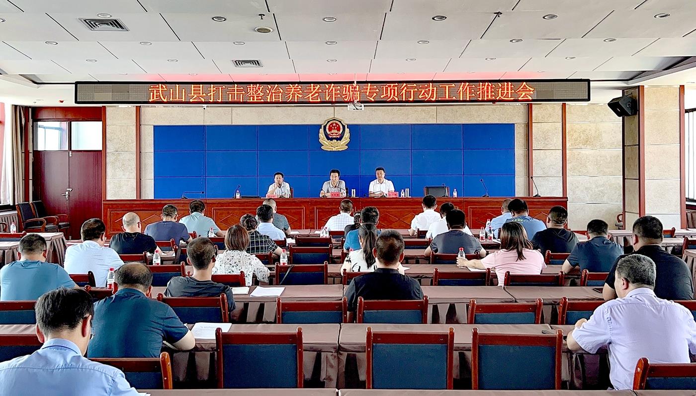 武山縣融媒體中心8月12日訊(記者 董世雄)8月12日,武山縣召開(kāi)打擊整治養(yǎng)老詐騙專(zhuān)項(xiàng)行動(dòng)工作推進(jìn)會(huì)議,傳達(dá)學(xué)習(xí)省、市委主要領(lǐng)導(dǎo)對(duì)打擊整治養(yǎng)老詐騙專(zhuān)項(xiàng)行動(dòng)的批示精神和全國(guó)、省、市打擊整治養(yǎng)老詐騙專(zhuān)項(xiàng)行動(dòng)第2次推進(jìn)會(huì)議精神,全面總結(jié)通報(bào)了全縣專(zhuān)項(xiàng)行動(dòng)工作開(kāi)展情況,縣委常委、政法委書(shū)記令軍強(qiáng)對(duì)專(zhuān)項(xiàng)行動(dòng)階段性重點(diǎn)工作進(jìn)行了再安排、再部署。會(huì)議由副縣長(zhǎng)、公安局局長(zhǎng)溫阿軍主持,縣打擊整治養(yǎng)老詐騙專(zhuān)項(xiàng)行動(dòng)辦公室主任、成員單位分管領(lǐng)導(dǎo)和各鄉(xiāng)鎮(zhèn)分管領(lǐng)導(dǎo)參加會(huì)議。