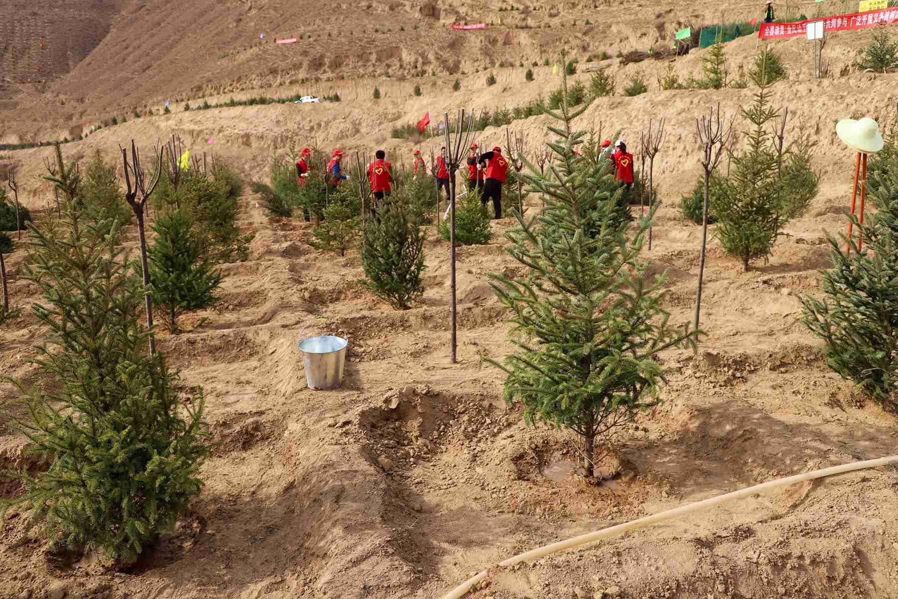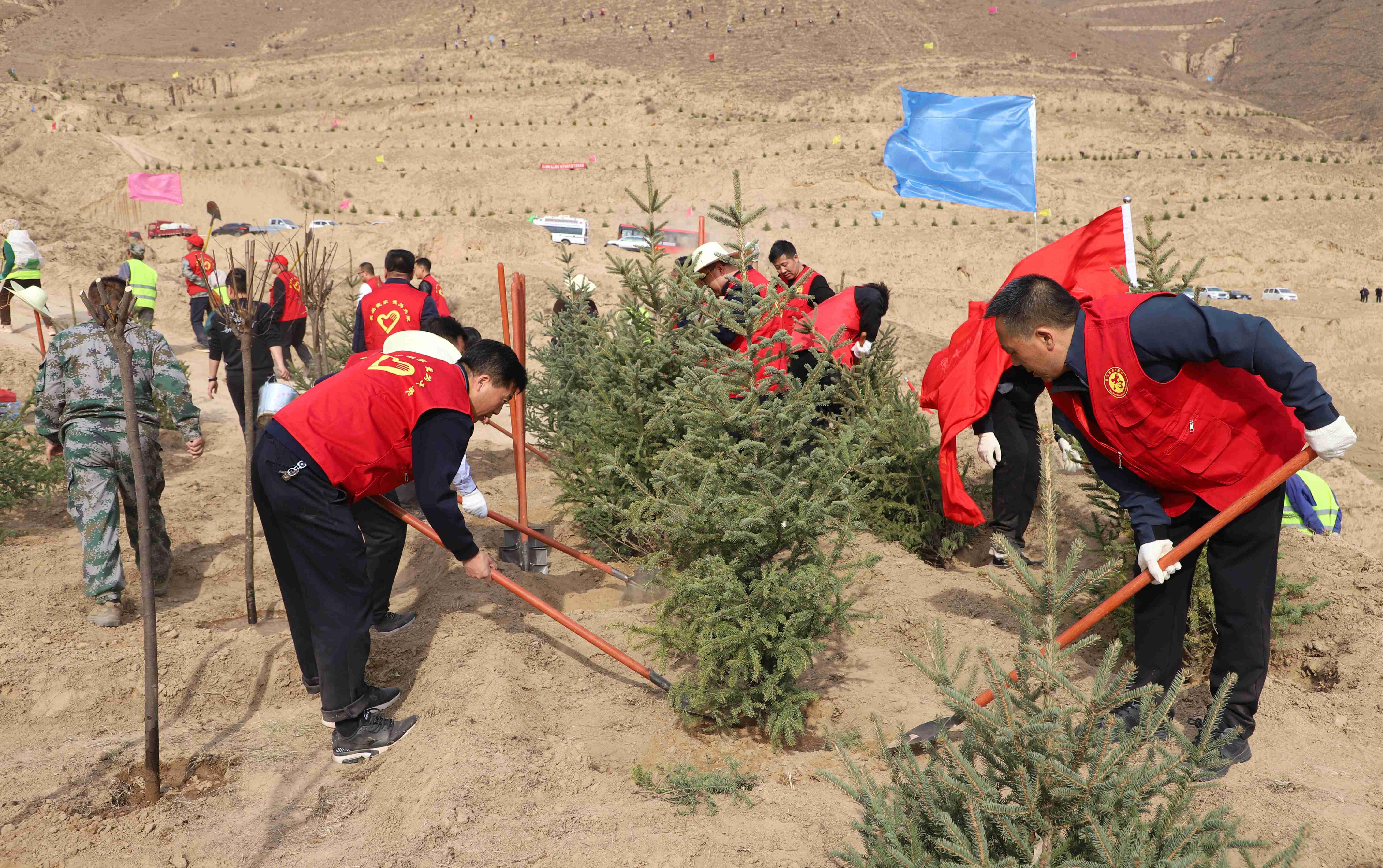 扶苗、培土、澆水,在技術(shù)人員的認(rèn)真指導(dǎo)下,大家三五人一組,相互配合,分工合作,各道工序一絲不茍,精心栽下一株株苗木,整個(gè)植樹現(xiàn)場(chǎng)呈現(xiàn)一派熱火朝天的勞動(dòng)景象。
