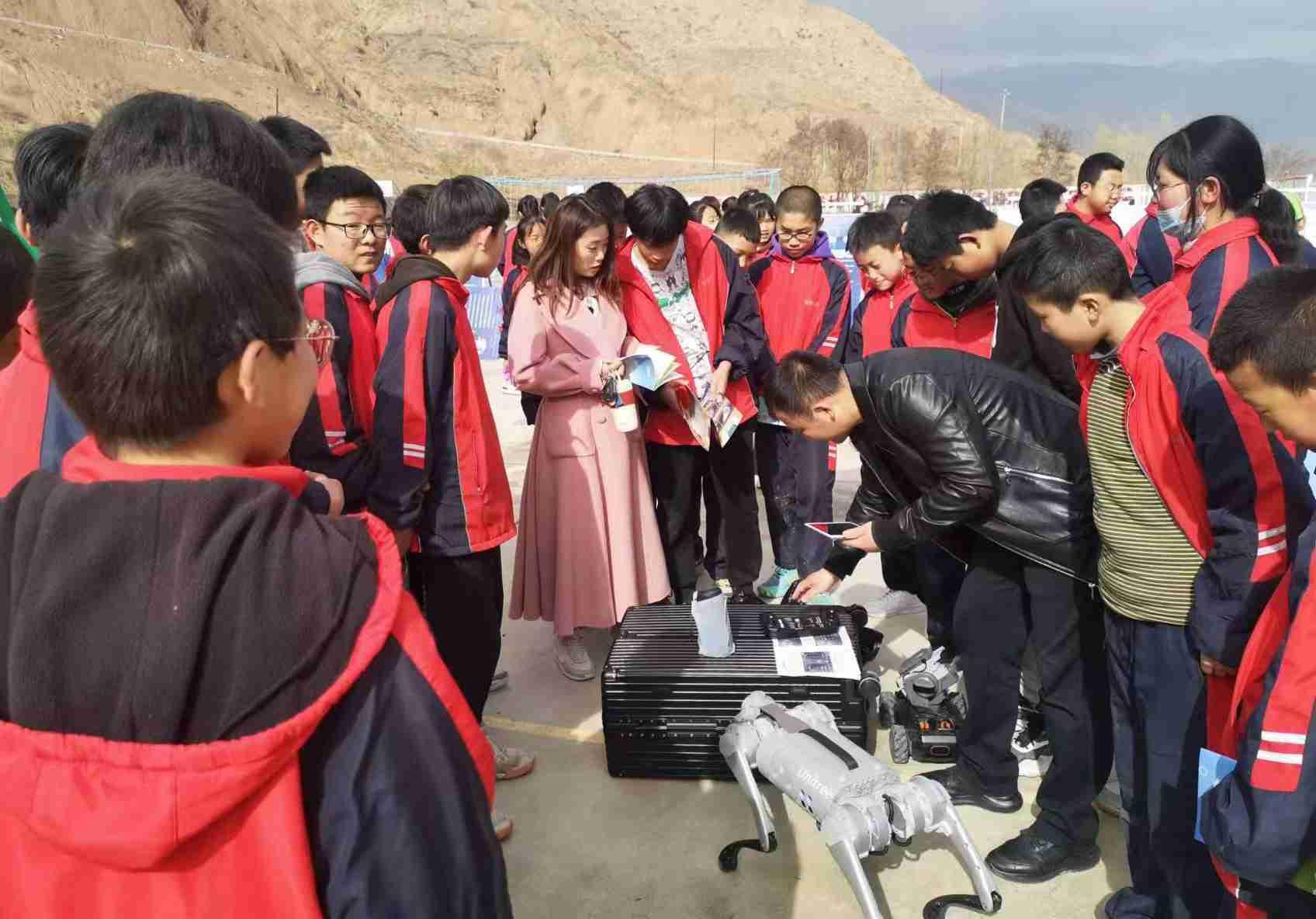 活動分為室內(nèi)室外兩個板塊,在室外,學(xué)生們觀看電子狗表演、無人機(jī)飛行、機(jī)甲機(jī)器人對戰(zhàn),以及體驗智能生活、健康安全、機(jī)械結(jié)構(gòu)等科普設(shè)備,這些展品融入了光學(xué)、力學(xué)、聲學(xué)、生物學(xué)科學(xué)知識和科學(xué)原理,集知識性、趣味性、互動性為一體,讓學(xué)生通過參與游戲互動的方式,學(xué)習(xí)科學(xué)知識,感受科學(xué)魅力。