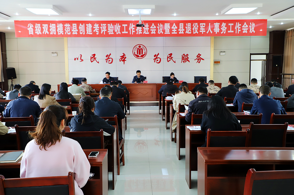 會(huì)議要求,軍地各部門要高度重視此次省級(jí)雙擁模范縣創(chuàng)建工作,要及時(shí)召開專題會(huì)議,研究部署雙擁創(chuàng)建具體工作任務(wù),進(jìn)一步靠實(shí)工作責(zé)任,盡快開展自查工作,加快補(bǔ)齊短板缺項(xiàng),在觀摩點(diǎn)和氛圍營造上要持續(xù)發(fā)力,確保省級(jí)雙擁模范縣“四連冠”創(chuàng)建目標(biāo)如期實(shí)現(xiàn)。各鄉(xiāng)鎮(zhèn)、各雙擁成員單位要在縣雙擁工作領(lǐng)導(dǎo)小組的統(tǒng)一領(lǐng)導(dǎo)下,全力做好迎檢準(zhǔn)備工作,縣雙擁辦要抽調(diào)專人組成工作組,對各單位、各觀摩點(diǎn)工作開展情況進(jìn)行督導(dǎo)檢查,及時(shí)發(fā)現(xiàn)問題,督促整改解決,確保考評驗(yàn)收各項(xiàng)工作落到實(shí)處。全縣退役軍人事務(wù)系統(tǒng),要深入學(xué)習(xí)貫徹習(xí)近平總書記關(guān)于退役軍人工作和雙擁工作的重要論述,聚焦全國及省市退役軍人事務(wù)廳(局)長會(huì)議提出的工作要求,穩(wěn)步推進(jìn)退役軍人思想政治、雙擁共建、優(yōu)待撫恤、就業(yè)安置、權(quán)益維護(hù)、烈士褒揚(yáng)、矛盾排查化解、優(yōu)待證申領(lǐng)、重點(diǎn)優(yōu)撫對象認(rèn)證等各項(xiàng)工作,真心實(shí)意為退役軍人排憂解難,全面提升退役軍人服務(wù)保障水平,充分發(fā)揮退役軍人在助力全縣經(jīng)濟(jì)社會(huì)高質(zhì)量發(fā)展,全面推進(jìn)鄉(xiāng)村振興及基層社會(huì)治理等方面的主力軍作用,努力開創(chuàng)全縣退役軍人工作新局面。