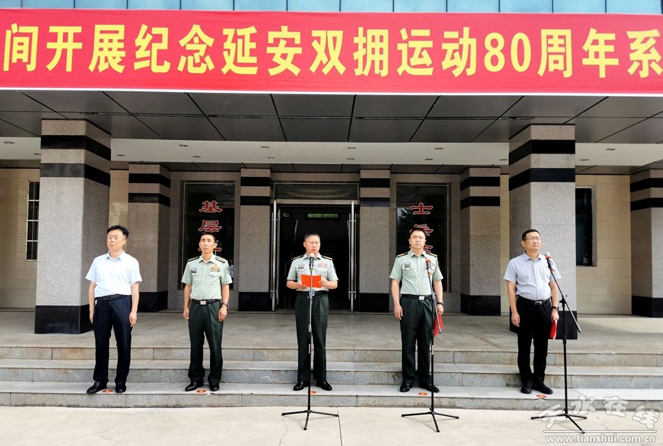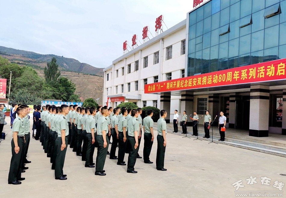 武山縣融媒體中心訊(記者:李益)7月28日,武山縣舉行紀(jì)念延安雙擁運動 80周年系列活動啟動儀式?h委常委、縣人民武裝部政委梁興衛(wèi),駐縣部隊負(fù)責(zé)人出席活動,副縣長李峰主持活動啟動儀式?h雙擁工作領(lǐng)導(dǎo)小組相關(guān)成員單位負(fù)責(zé)人和駐縣部隊官兵代表,擁軍企業(yè)代表及參加相關(guān)雙擁活動的文化工作者、法律專家和運動員代表參加活動。