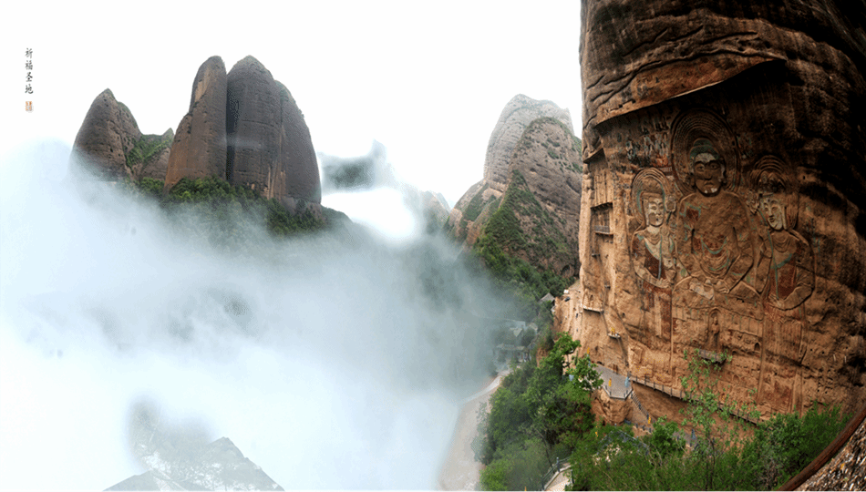 水簾洞景區(qū):國(guó)家4A級(jí)旅游景區(qū),全國(guó)重點(diǎn)文物保護(hù)單位,始建于十六國(guó)后秦,經(jīng)北魏、北周、隋、唐、五代至宋、元、明、清各代增建和重修,形成“七寺五臺(tái)”,現(xiàn)存有水簾洞、拉梢寺、千佛洞、顯圣池四個(gè)單元,現(xiàn)保留有歷代造像百余尊,壁畫(huà)三千多平方米,古建筑物十多座,舍利塔十二座,題記碑刻二十七通,無(wú)頭干尸一具。水簾洞景區(qū)因谷內(nèi)山崖陡峭,峰林密集,古時(shí)稱為“木林峽”。后據(jù)當(dāng)?shù)貍髡f(shuō)魯班曾在此清修,又有一別名叫“魯班峽”。水簾洞石窟群自古以來(lái)就是祈福圣地,它東臨麥積山,西望炳靈寺,造像風(fēng)格一脈相承,將浮雕、窟龕、懸塑、壁畫(huà)相結(jié)合,融各代佛教文化于一體,加上周?chē)牡は嫉孛诧L(fēng)光,構(gòu)成了獨(dú)特壯麗的人文自然景觀。拉梢寺世界第一摩崖浮雕大佛,高60余米,整幅雕像是由大佛、脅侍菩薩和蓮座組成的渾然一體的完美藝術(shù)作品,是中國(guó)石窟藝術(shù)中的珍寶。1984年7月,工作人員在維修大佛時(shí)在遮雨檐內(nèi)發(fā)現(xiàn)一面刻有元大德六年題記的祈福銅鏡,祈福銅鏡的發(fā)現(xiàn)成為元代修葺拉稍寺的重要實(shí)物證據(jù),更印證了大佛的祈福歷史。