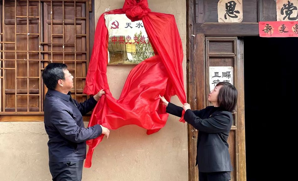 (縣委副書記王萍、縣人大常委會副主任郭海濤為“天水市第一批中共黨史教育基地”武山縣洛門鎮(zhèn)劉坪黨支部舊址揭牌)
