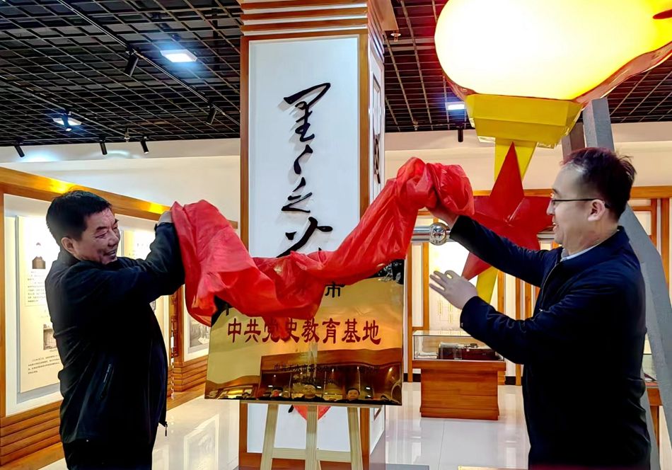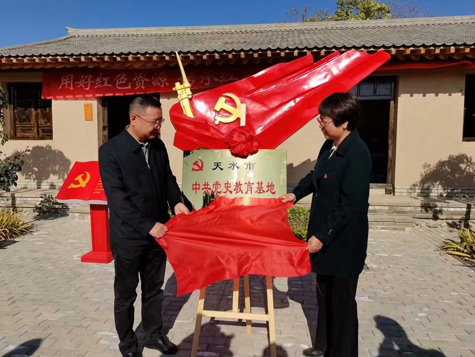 (縣委常委、組織部部長宋昌華,縣政協(xié)副主席孟立瑞為“天水市第一批中共黨史教育基地”武山縣紅軍長征強渡渭河紀念館揭牌)
