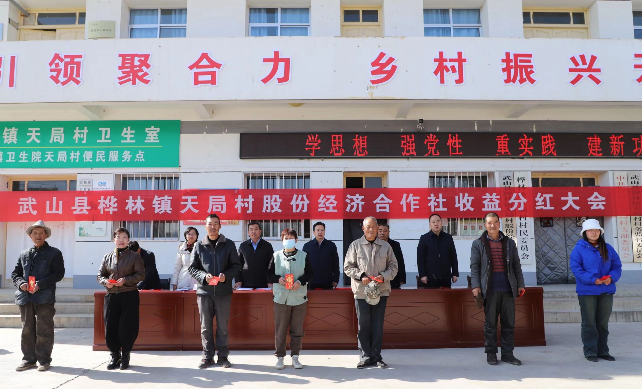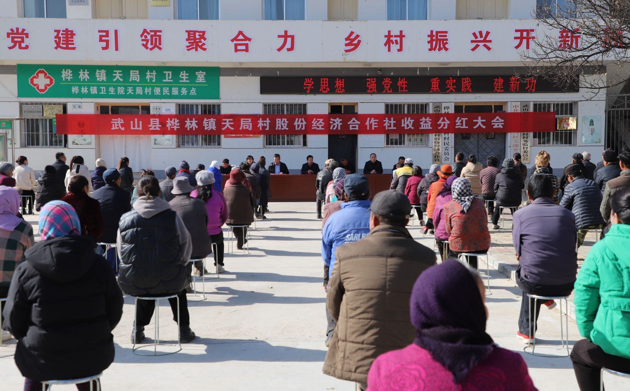 11月22日,武山縣樺林鎮(zhèn)天局村在村級(jí)黨群活動(dòng)中心廣場(chǎng)舉行村集體經(jīng)濟(jì)收益分紅大會(huì),縣委副書記、縣長(zhǎng)王志成講話并宣布分紅開(kāi)始。