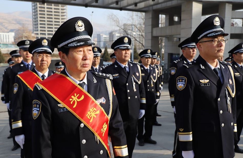 上午10時整,護旗隊標(biāo)兵精神抖擻,邁著鏗鏘有力、整齊劃一的步伐走向升旗臺!吧欤 薄白喑袊嗣窬炀!”隨著號令,擎旗手揮臂揚旗,伴隨著《中國人民警察警歌》振奮激昂的旋律,中國人民警察警旗迎著朝陽冉冉升起,全體民警著裝整齊、列隊肅立、向警旗莊嚴(yán)敬禮,以此表達對公安事業(yè)的無限忠誠和熱愛。警旗獵獵、誓言錚錚,全體民警重溫入警誓詞,進一步增強了忠誠履職盡責(zé)的使命感,彰顯對公安事業(yè)的無限忠誠與熱愛。升旗儀式后,舉行了莊重的退休民警紀(jì)念章頒授儀式,并為新警代表授了警銜。參加儀式的各位領(lǐng)導(dǎo),局黨委班子成員及局屬各部門負(fù)責(zé)人觀看了2023年公安重點工作大盤點視頻片。