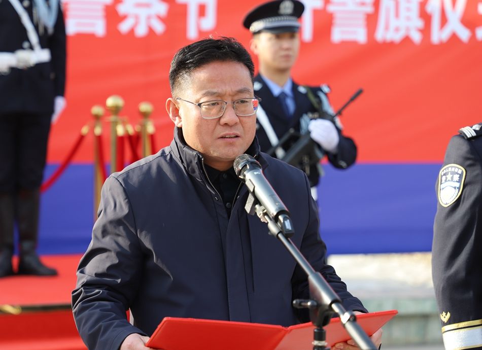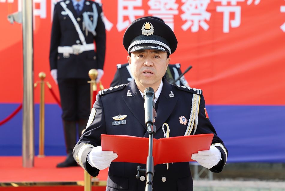 縣委常委、政法委書記王想成出席儀式并講話,副縣長、縣公安局黨委書記、局長王根紅致辭并帶領(lǐng)全體公安民警重溫入警誓詞。縣法檢兩長、縣公安局黨委班子成員,全體民警及退休民警、法警代表參加儀式。