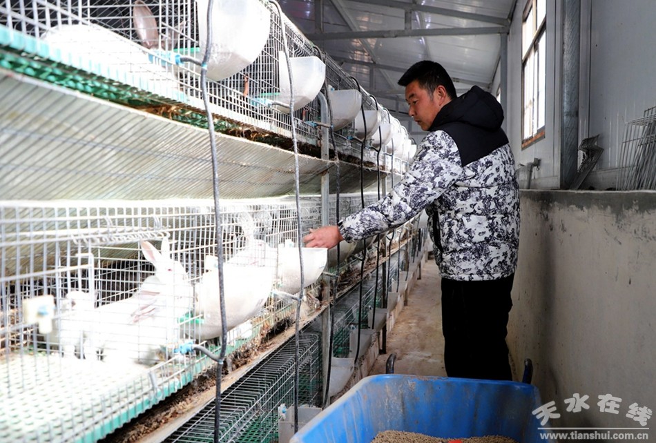 冬日,走進干扎村瑞民種養(yǎng)殖專業(yè)合作社,只見廠房內一排排整齊的兔籠中,潔白的、黑色的、灰色的兔子活蹦亂跳,養(yǎng)殖場的工人正在給兔子喂食,整個養(yǎng)殖場內干凈敞亮。