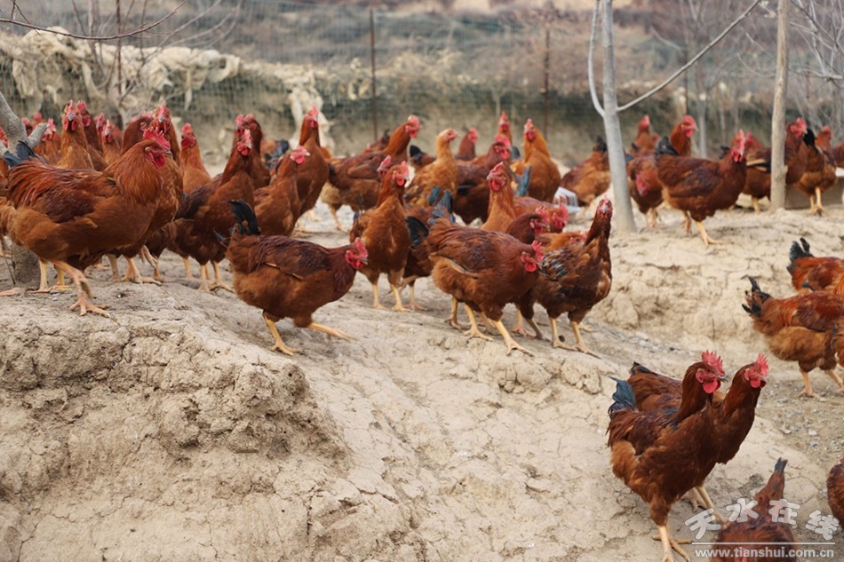 在武山縣雙場種養(yǎng)殖專業(yè)合作社,一群生態(tài)“溜達雞”正在悠閑散步,“野性”十足,輕盈若飛鳥,有的飛向樹枝互比站高,有的曬著暖洋洋的太陽,“雞群領頭人”正在投喂雞飼料,構成一幅生動的產業(yè)發(fā)展圖。