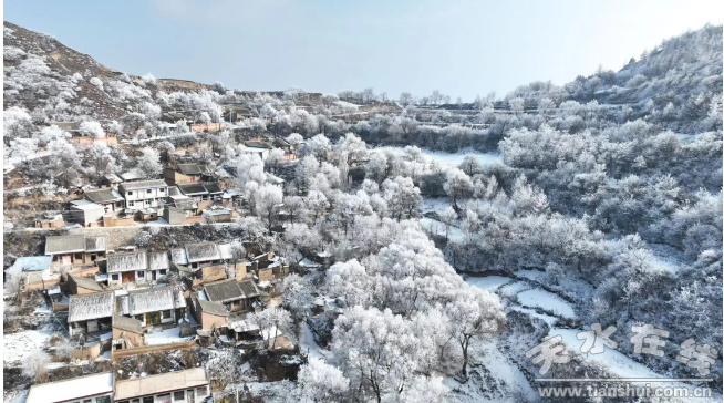 走進榆盤鎮(zhèn),雪落滿了枝丫,樹木裹上了銀裝,鄉(xiāng)村小屋披上了潔白的面紗,變身浪漫唯美的“冰雪世界”。