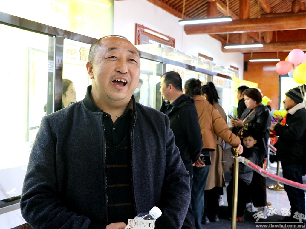在農(nóng)特農(nóng)副產(chǎn)品展臺前,專程參加搗蒜罐舞的蘭州游客王一珉在品嘗特色蕎面餅后,加了工作人員微信,以郵寄的方式訂購了一些產(chǎn)品。她高興地說道:“每次來天水都會買點當?shù)靥厣朗场_@是第一次吃武山的,色澤誘人,味道很好。剛加了老板微信,方便以后常郵寄到蘭州,當早餐吃,想想都感覺很好!