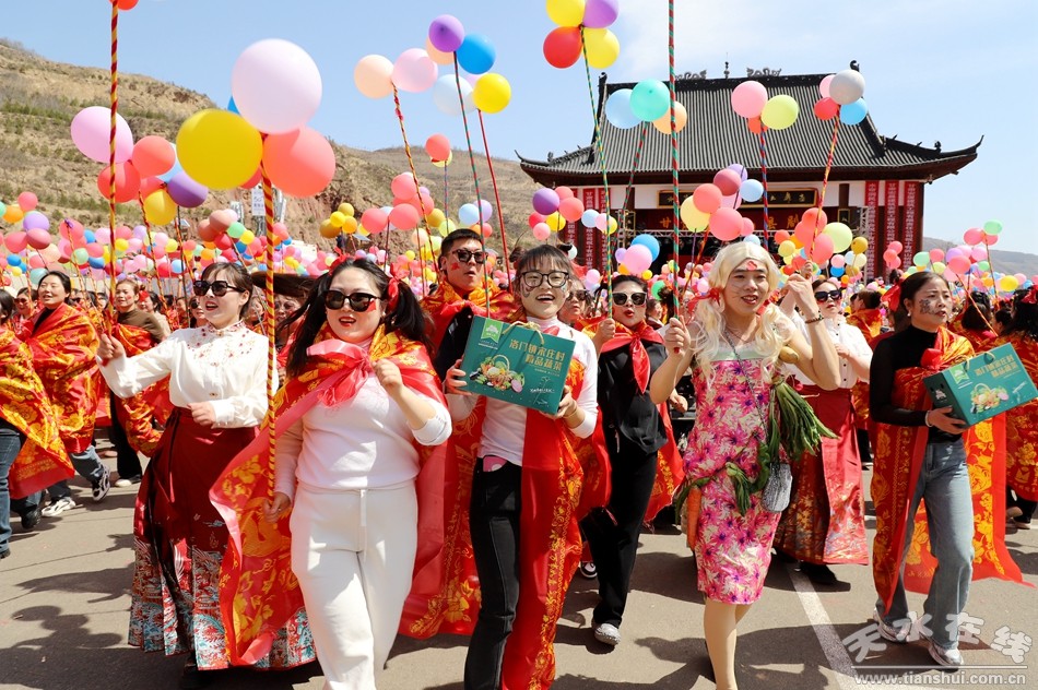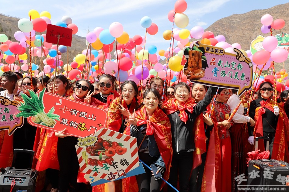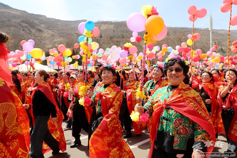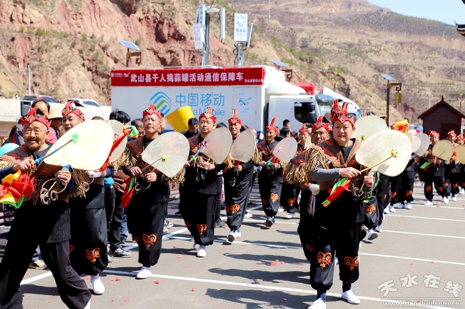 新武山訊(記者 車彤瑤 楊耀斌)3月25日,隴上菜都·十有武山“搗蒜罐 迎百祥 納萬!甭彘T鎮(zhèn)千人蒜罐舞激情上演,洛門鎮(zhèn)5個片區(qū)和3個社區(qū)的1000余人組成了演出隊(duì)伍,在國家4A級旅游景區(qū)水簾洞用搗蒜罐這種民俗活動迎百祥、納萬福,為“天水麻辣燙”吃貨節(jié)添彩。