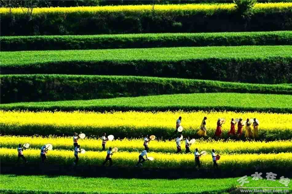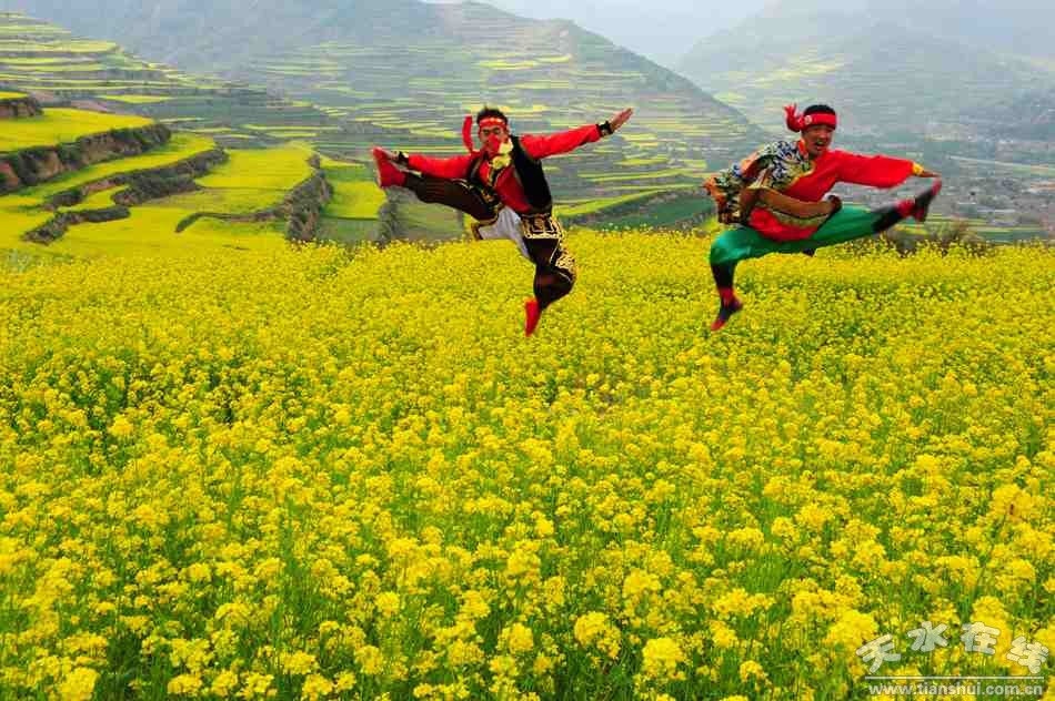 四月,天水武山的油菜花開(kāi)了,金黃的油菜花里,黃蝶飛舞、兒童嬉戲,舞者在花田起舞,游人在花田拍照,一陣陣歡快的笑聲回蕩在油菜花田中。(文/圖 郭永強(qiáng) 李竹青)