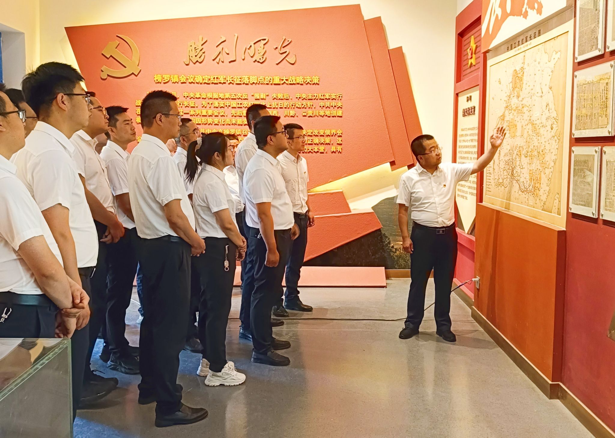 在紀念館前,全體黨員干部整齊肅立,懷著崇敬的心情向革命先烈雕像敬獻花籃、鞠躬致敬,重溫入黨誓詞。隨后,認真參觀了榜羅鎮(zhèn)會議紀念館、革命文物陳列室、警衛(wèi)團駐地遺址,深入了解了榜羅鎮(zhèn)會議召開的歷史背景、重大意義和紅二十五軍、紅一、二、四方面軍長征途徑通渭的戰(zhàn)斗歷程。一幅幅圖片、一件件實物、一個個故事,讓大家更加深刻地感受到紅軍長征的艱苦卓絕、革命歲月的波瀾壯闊、美好生活的來之不易;更加深刻地感受到共產(chǎn)黨人堅定不移的理想信念、忠貞不渝的革命情懷、密切聯(lián)系群眾的優(yōu)良作風和為中華民族獨立與人民解放所做出的卓越貢獻。