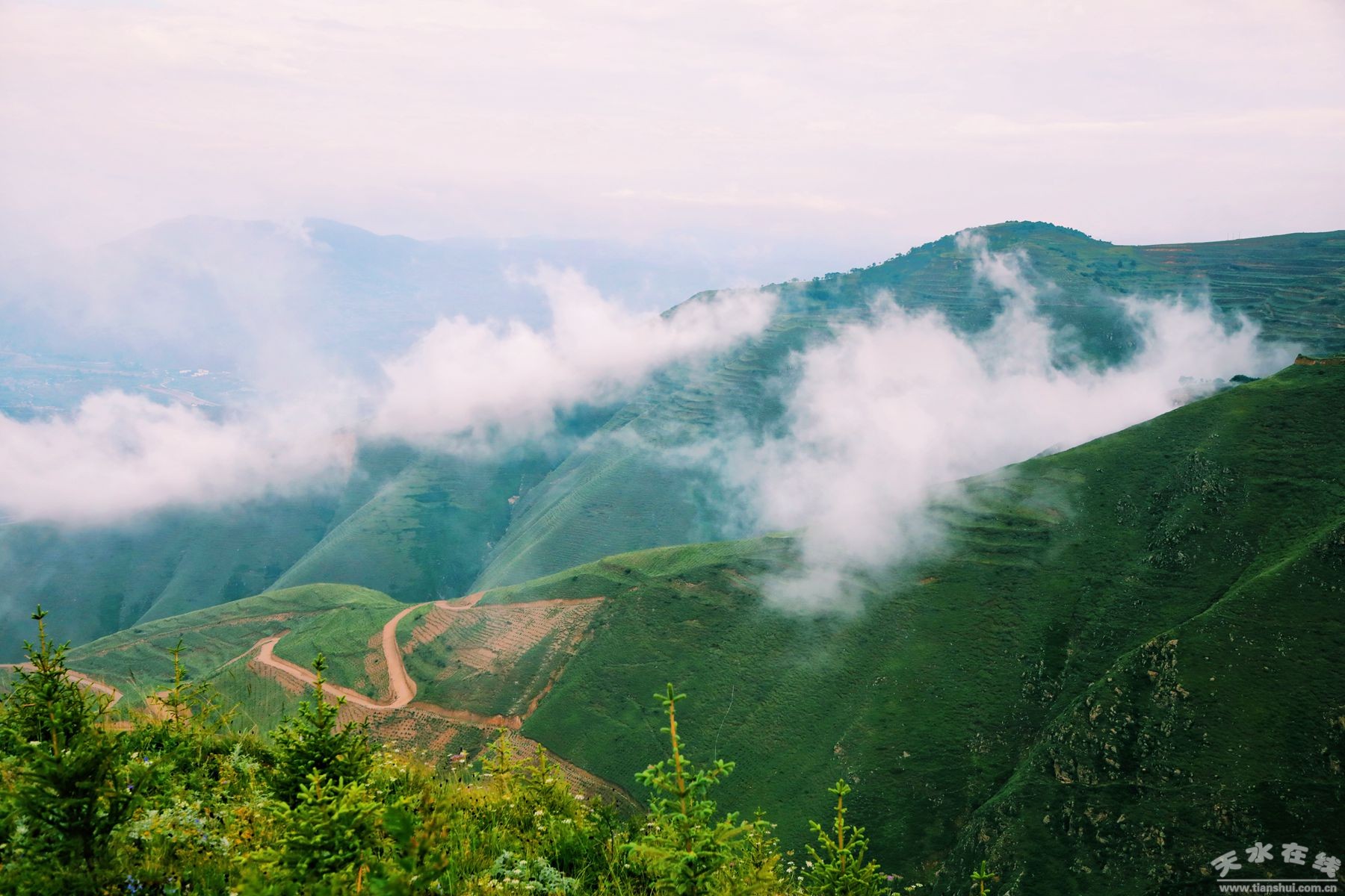 從武山縣城出發(fā),經(jīng)杜楞村入何家溝,行進(jìn)不多時,在榆盤鎮(zhèn)下河村轉(zhuǎn)向上山,經(jīng)草甸、穿林海,一刻鐘左右,便可到盤龍山頂。這座高峻的山峰,蜿蜒起伏、峰巒相連,猶如一條巨龍盤踞于天地之間,它不僅是大自然饋贈的一方凈土,更是塵世喧囂中的寧靜港灣。