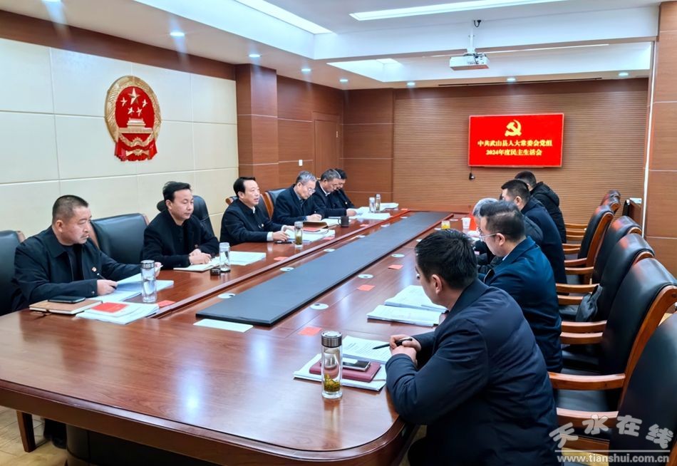新武山訊(記者 劉慧茹)1月14日,縣人大常委會黨組書記、主任孫德銀主持召開縣人大常委會黨組2024年度民主生活會?h人大常委會黨組成員、副主任張志林、王喜來、陳文武、汪向理參加會議。縣人大常委會副主任駱育喜、辦公室班子成員列席會議?h紀(jì)委、縣委組織部負責(zé)同志到會指導(dǎo)民主生活會。