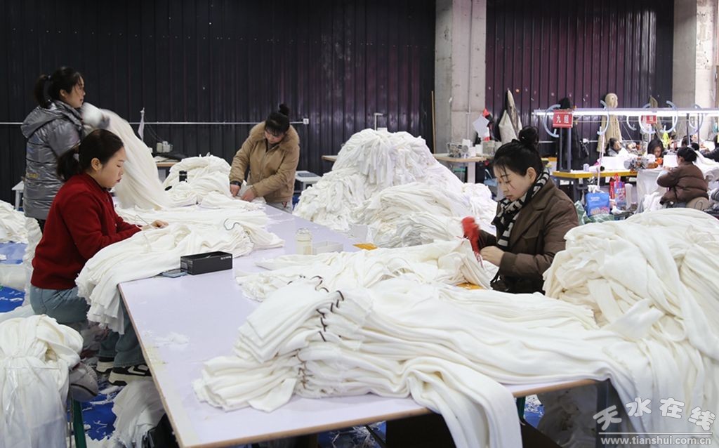 天水市千之都服飾有限公司是武山縣大力發(fā)展輕工制造和低碳綠色經(jīng)濟的重點招商引資項目,在豐富產(chǎn)業(yè)類型的同時有效解決當?shù)厝罕妱展栴}。公司主要生產(chǎn)毛衣、紡織件等半成品,產(chǎn)品運往廣州印染加工后,主要銷售至歐美、俄羅斯等國家和地區(qū)。