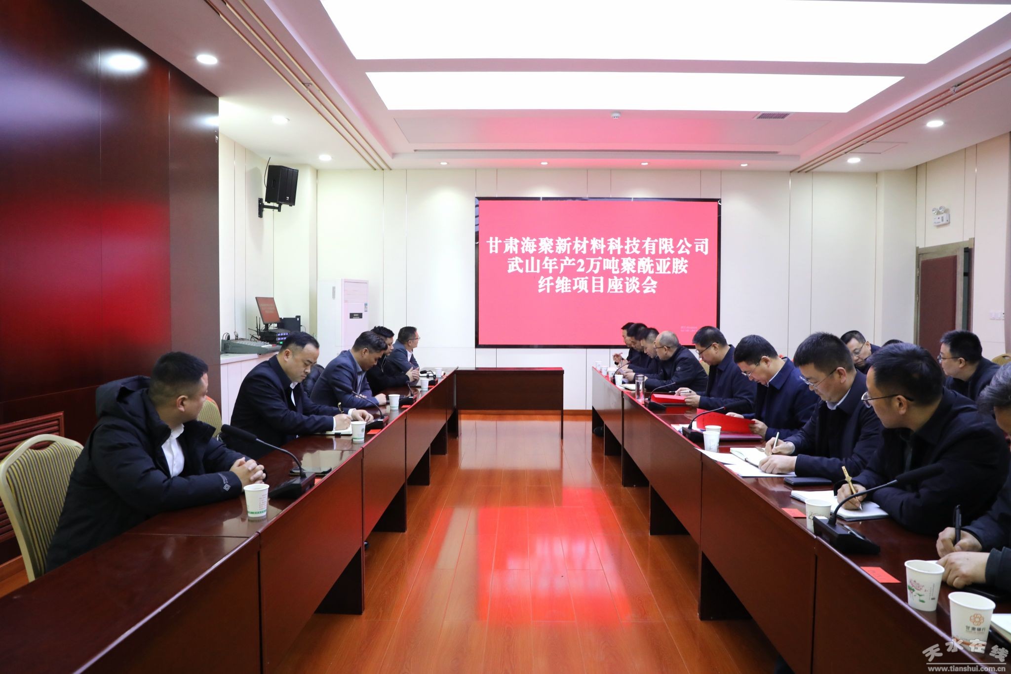 趙百祥對黃海生一行的到來表示熱烈歡迎,對海億科技產(chǎn)業(yè)集團(tuán)長期以來對武山經(jīng)濟(jì)社會發(fā)展的關(guān)注支持表示感謝。他說,海億科技產(chǎn)業(yè)集團(tuán)是國內(nèi)高新技術(shù)產(chǎn)業(yè)的領(lǐng)軍者,有多項?聚酰亞胺纖維濕法工藝發(fā)明專利,與武山深化合作前景廣闊。希望海億科技產(chǎn)業(yè)集團(tuán)充分發(fā)揮企業(yè)優(yōu)勢,與武山加強溝通交流、深化務(wù)實合作,為加快高質(zhì)量發(fā)展注入新的動能活力。武山將始終秉持“只要企業(yè)定了干、一切手續(xù)政府辦”的理念,全程提供一對一、專班制服務(wù),全面落實各項惠企政策,及時協(xié)調(diào)解決困難問題,全力推動項目落地實施,攜手開創(chuàng)地企合作共贏的嶄新局面。