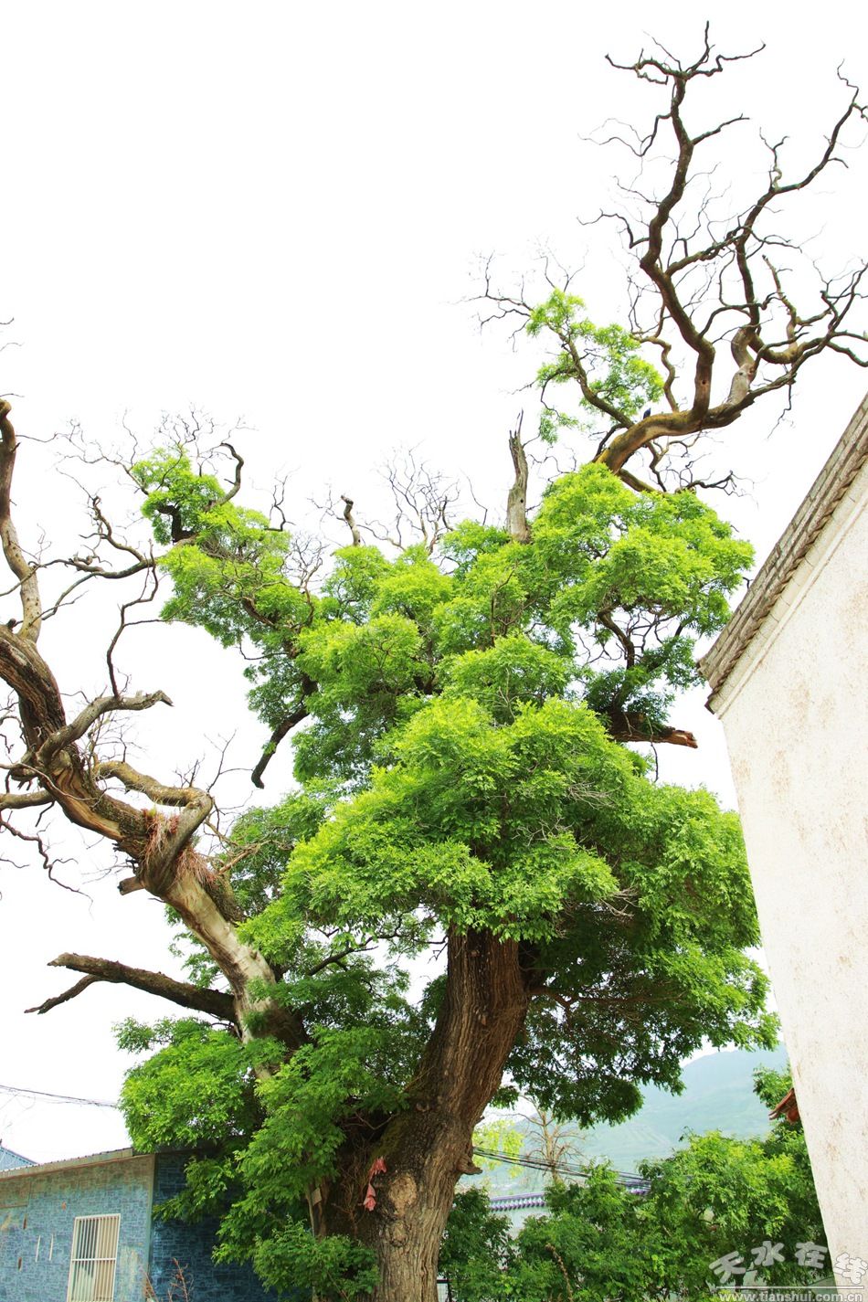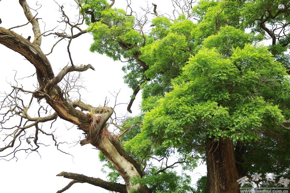 走近這棵古槐,最為震撼的便是它“枯榮共生”的奇特景象。粗壯的樹(shù)干上,一邊是郁郁蔥蔥的綠葉,在陽(yáng)光的照耀下閃爍著生機(jī)與活力,那層層疊疊的翠綠,仿佛在訴說(shuō)著生命的蓬勃與熱烈;而另一邊,則是干枯的枝丫,扭曲而滄桑,它們?cè)跁r(shí)光的侵蝕下失去了翠綠的衣裳,只剩下嶙峋的輪廓,似在默默追憶往昔歲月。一邊是新生命的不斷萌發(fā),一邊是舊時(shí)光的沉沉落幕,綠葉與枯枝形成了強(qiáng)烈的視覺(jué)對(duì)比,既讓人感受到生命的頑強(qiáng)不息,又讓人感慨歲月的無(wú)情流逝。