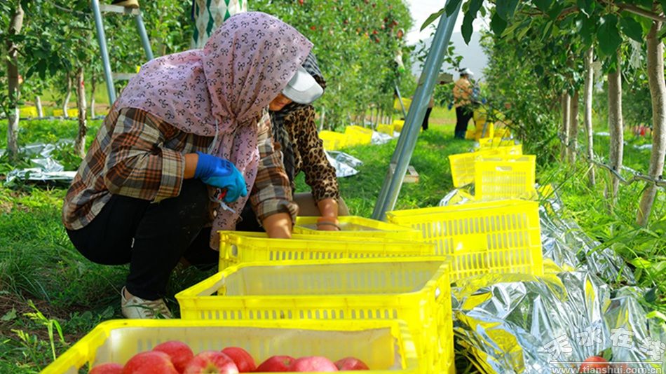 “一年四季有活做,鋤草的時候鋤一下草、刷果樹,摘蘋果的時候又能摘蘋果、包裝蘋果。既能管孩子,又能在附近掙些零花錢!碧m溝村村民薛月芳看著滿筐的蘋果,臉上洋溢著喜悅。