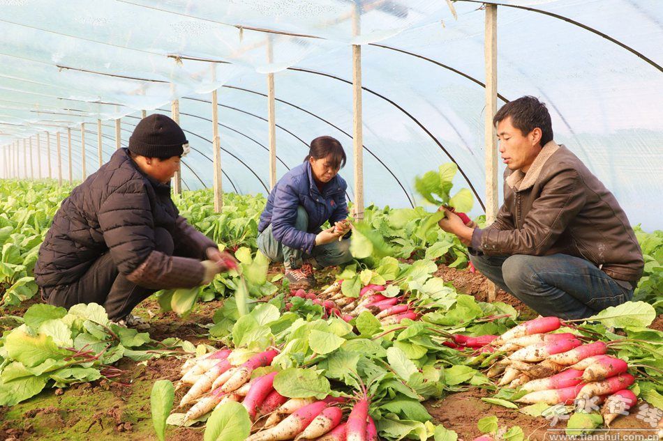 產(chǎn)業(yè)要發(fā)展,設(shè)施需先行。近年來,武山縣大力推進鋼架大棚建設(shè)和舊棚改造,完善田間道路等基礎(chǔ)設(shè)施,推動設(shè)施蔬菜產(chǎn)業(yè)提質(zhì)增效。目前,該區(qū)域已形成“冬春水蘿卜、復(fù)種西紅柿、芹菜等”的高效種植模式,蔬菜種植面積達兩萬畝。僅冬季水蘿卜一茬,畝產(chǎn)可超5000斤,收益超過8000元。