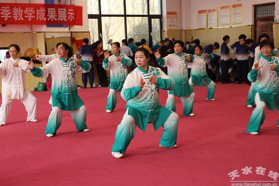 展演現(xiàn)場暖意融融,節(jié)目精彩紛呈。八段錦表演中,學員們氣定神閑、動作整齊劃一,張弛有度間盡顯傳統(tǒng)養(yǎng)生功法的神韻 ;武術(shù)表演剛?cè)岵,拳術(shù)舒展有力,太極扇開合翻轉(zhuǎn),盡顯銀齡武者的豪邁風采 ;舞蹈隊身著絢麗服飾,舞步輕盈靈動,用優(yōu)美舞姿演繹歲月歡歌;二胡合奏悠揚婉轉(zhuǎn),琴弦流淌間訴說著對黨的赤誠與感恩,贏得全場陣陣掌聲。舞臺上的學員們神采奕奕,一招一式、一弦一舞之間,既彰顯了中華傳統(tǒng)文化的深厚底蘊,更抒發(fā)了對黨、對祖國、對新時代幸福生活的真摯熱愛與贊美。