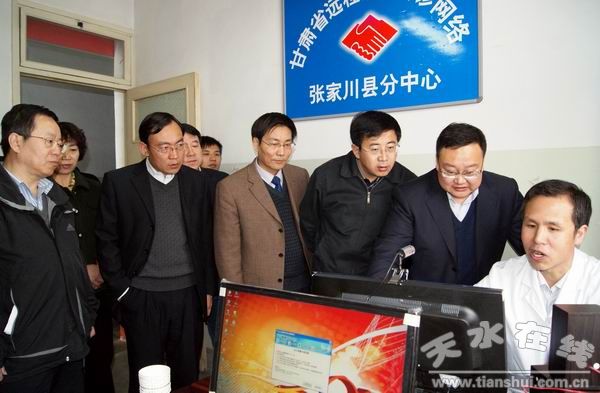 啟動(dòng)儀式結(jié)束后,省市縣領(lǐng)導(dǎo)還深入張家川縣遠(yuǎn)程會(huì)診網(wǎng)絡(luò)中心、張家川鎮(zhèn)衛(wèi)生院遠(yuǎn)程醫(yī)學(xué)會(huì)診控制中心,查看系統(tǒng)運(yùn)行情況,詢問(wèn)系統(tǒng)相關(guān)問(wèn)題,并親自對(duì)遠(yuǎn)程會(huì)診系統(tǒng)進(jìn)行了簡(jiǎn)單操作,通過(guò)網(wǎng)絡(luò)與省醫(yī)院遠(yuǎn)程會(huì)診網(wǎng)絡(luò)中心的專家進(jìn)行了親切交談。