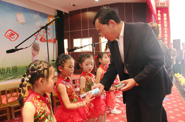 縣委副書記、縣長(zhǎng)馬中奇向孩子們送節(jié)日慰問(wèn)品