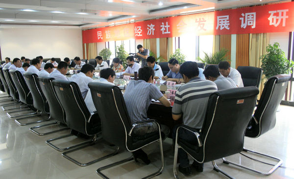 下午,市委第三調(diào)研組在張家川縣委常委會議室召開了調(diào)研座談會。會上,市委常委、統(tǒng)戰(zhàn)部長李美華做了重要講話,市民委主任呂惠安就民族地區(qū)經(jīng)濟(jì)發(fā)展、市發(fā)改委副主任李鳳奇就關(guān)中—天水經(jīng)濟(jì)區(qū)建設(shè)、市工商聯(lián)副主任蔡建春就非公有制經(jīng)濟(jì)發(fā)展方面做了交流發(fā)言,縣委書記劉長江做了表態(tài)發(fā)言,縣委副書記、縣長馬中奇向調(diào)研組做了全縣經(jīng)濟(jì)社會發(fā)展情況的匯報。座談會由縣委書記劉長江主持。市委副秘書長、督查室主任劉鋒,市委統(tǒng)副戰(zhàn)長安定文及調(diào)研組全體成員,縣委副書記、縣人大主任李肖鋒,縣委常委、副縣長馬利民,縣委常委、統(tǒng)戰(zhàn)部長馬全榮及縣直相關(guān)單位、非公有制企業(yè)代表參加了座談會。