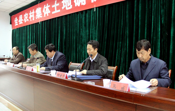 10月20日上午,張家川回族自治縣農(nóng)村集體土地確權(quán)登記發(fā)證工作會議在縣國土局四樓會議室召開?h委常委、紀(jì)委書記夏草,縣委常委、常務(wù)副縣長何吉洲,縣人大副主任王九仲,縣政協(xié)副主席馬威出席會議?h國土、公安、民政、財政、農(nóng)業(yè)、林業(yè)等部門負(fù)責(zé)人及15鄉(xiāng)鎮(zhèn)鄉(xiāng)(鎮(zhèn))長、土地管理員參加了會議。