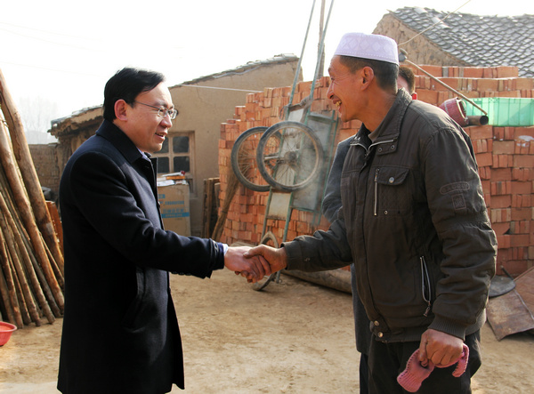2月14日上午,張家川回族自治縣委副書記、縣長馬中奇到龍山鎮(zhèn)官泉村看望當(dāng)?shù)厝罕,幫助示范戶想辦法、出主意、謀出路,幫助貧困戶解決生活、就醫(yī)、住房等方面的實(shí)際困難,掀起“千名干部聯(lián)萬戶”活動(dòng)高潮。