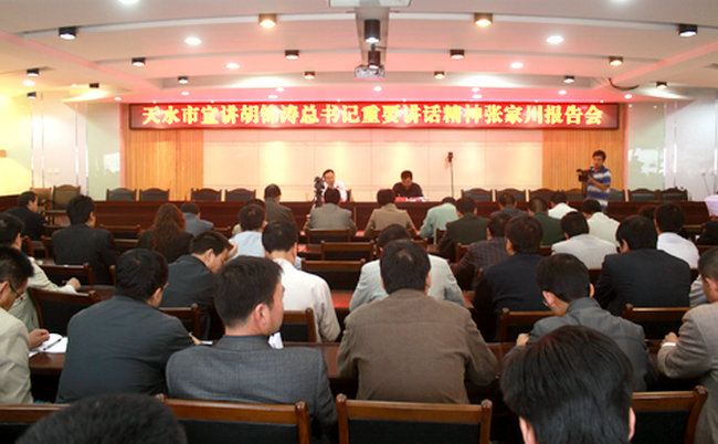 9月5日上午,天水市宣講胡錦濤總書記重要講話精神報告會在張家川回族自治縣行政中心八樓會議室舉行。