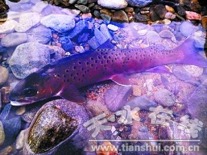 趙老板說細鱗鮭的全名是秦嶺細鱗鮭。屬魚綱鮭形目鮭科細鱗鮭屬,為中國所特有,中國國家二級保護野生動物,列入《中國瀕危動物紅皮書》屬瀕危物種。僅分布于渭河上游及其支流和漢水北側(cè)支流湑水河、子午河的上游的溪流中。