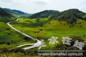 在張家川境內(nèi)我們見到的是狹谷是險峰,讓人感到奇怪的是一到隴縣的關(guān)山牧場,地理風(fēng)貌大變。