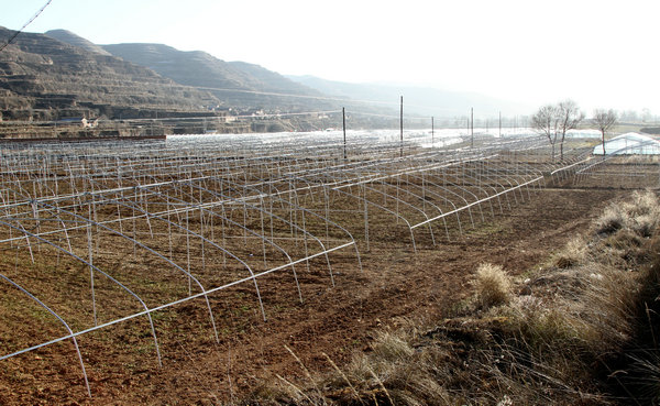 (石峽灌區(qū)蔬菜標(biāo)準(zhǔn)化示范產(chǎn)業(yè)園內(nèi)新建的蔬菜大棚)
