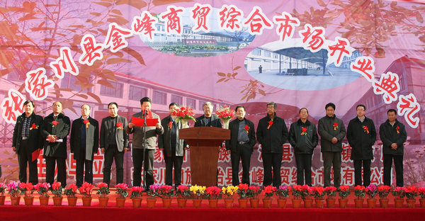 (趙文強(qiáng)、關(guān)春生共同為金峰商貿(mào)綜合市場(chǎng)揭牌)