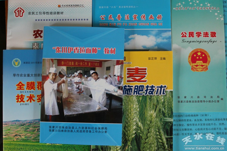 記者在木河鄉(xiāng)店子村看到送科技下鄉(xiāng)小分隊中,被老百姓團(tuán)團(tuán)圍住的就是縣勞務(wù)辦的工作人員,究其原因,是他們抱著《農(nóng)民工素質(zhì)教育讀本》和《張家川縣伊香拉面師》培訓(xùn)教材給百姓講解增收致富相關(guān)的科技知識。