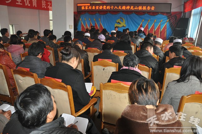 目前,張家川回族自治縣已派出10多個宣講團(tuán)到全縣15個鄉(xiāng)鎮(zhèn)及200多個村進(jìn)行十八大精神宣講,用事實(shí)說話、用典型說話、用數(shù)字說話,確保將十八大精神傳達(dá)到基層,宣傳到群眾,讓十八大精神家喻戶曉,深入人心。宣講團(tuán)已在全縣舉辦各種形式的宣講100多場次。