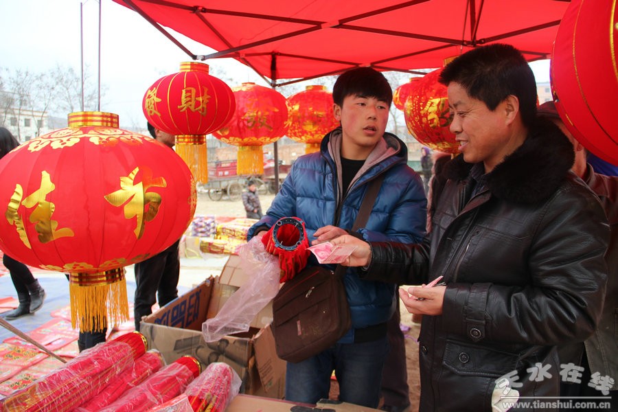 小韓是來自連五鄉(xiāng)的一位農(nóng)村小伙子,他在蘭州上大學(xué),每年假期他就擺地?cái)傋鳇c(diǎn)小生意,來貼補(bǔ)學(xué)費(fèi)。今年寒假,他做起了賣春聯(lián)的生意。他的攤位不大,L字形的桌子,一邊賣各種飾品、掛件,一邊賣春聯(lián)。小韓說,從前些天擺賣的情況看,逢集時(shí)早上10時(shí)至下午4時(shí)銷售情況比較好。