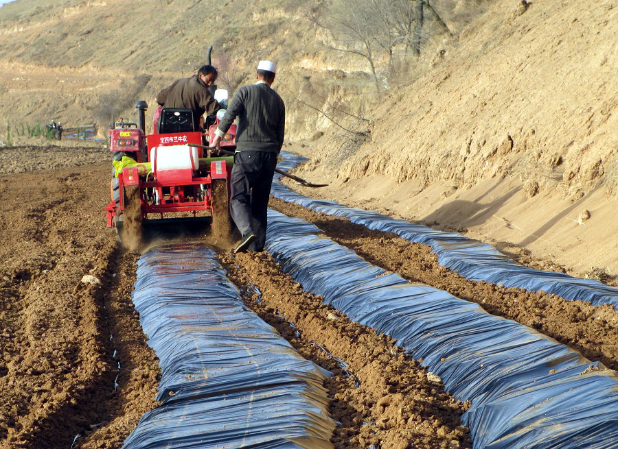 在王家村一片新治理的土地里,正在指導種植黑膜洋芋的縣農(nóng)業(yè)局技術(shù)人員王志能告訴記者:“這里以前是坡地,土地全部都是細細長長的,老百姓俗稱‘條條田’,去年實施了萬畝高標準農(nóng)田改造項目,形成了耕地梯田化、耕作機械化和農(nóng)田道路網(wǎng)絡(luò)化!蓖踔灸苷f:“今年,縣上在這里嘗試推廣農(nóng)業(yè)新技術(shù),建設(shè)一個千畝黑膜洋芋種植點和二級脫毒種薯新品種推廣示范基地,打造現(xiàn)代農(nóng)業(yè)精品工程!